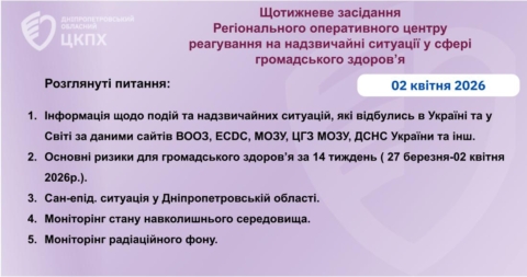 Засідання Оперативного центру реагування на надзвичайні ситуації ДУ «Дніпропетровський ОЦКПХ МОЗ» 02.04.2026