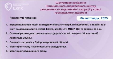 Щотижневе засідання Регіонального оперативного центру реагування на надзвичайні ситуації у сфері громадського здоров’я Дніпропетровського обласного ЦКПХ