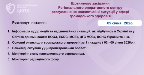 Щодо санітарно-епідемічної ситуації на території Дніпропетровської області за період з 02.01.2026р. по 08.01.2026р