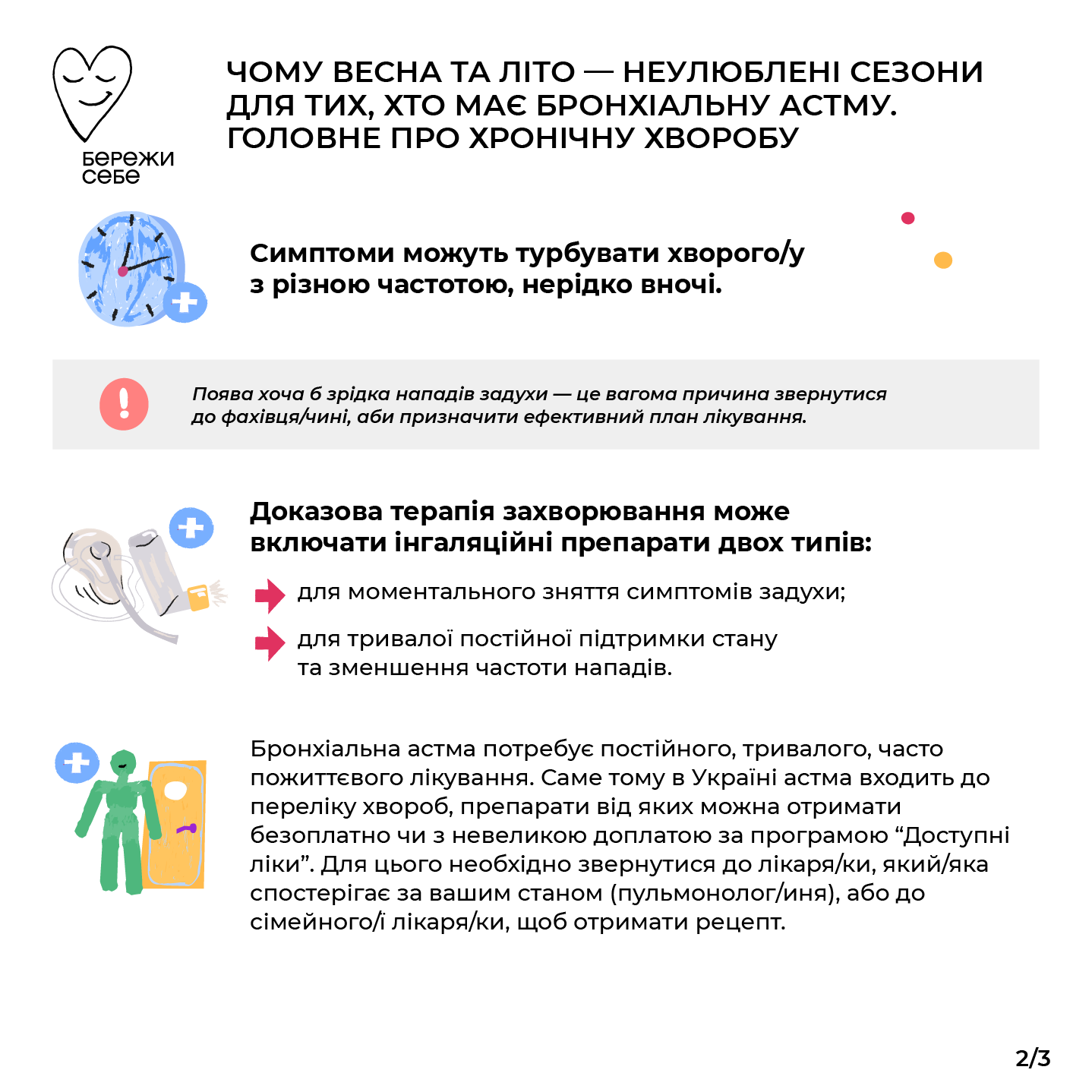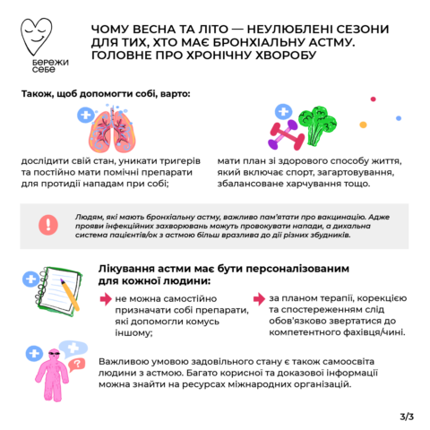 – оскільки причиною астми можуть стати деякі препарати, не займайтесь самолікуванням, перед прийомом будь-яких ліків радьтеся з лікарем.