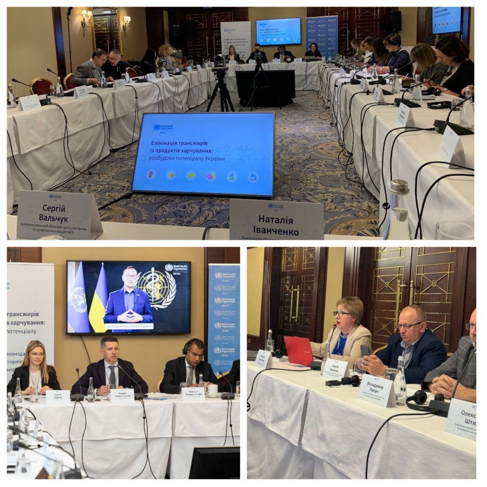 Захід організовано на підтримку України в елімінації трансжирів представниками Бюро ВООЗ Україні у партнерстві з Центром громадського здоров’я МОЗУ та ДСУ з питань безпечності харчових продуктів та захисту споживача.