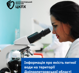 Державна установа «Дніпропетровський обласний центр контролю та профілактики хвороб Міністерства охорони здоров’я України » на період воєнного стану в країні продовжує здійснювати щоденний лабораторний контроль якості та безпечності питної води за мікробіологічними та фізико-хімічними показниками у визначених моніторингових точках на території області в межах соціально – гігієнічного моніторингу.