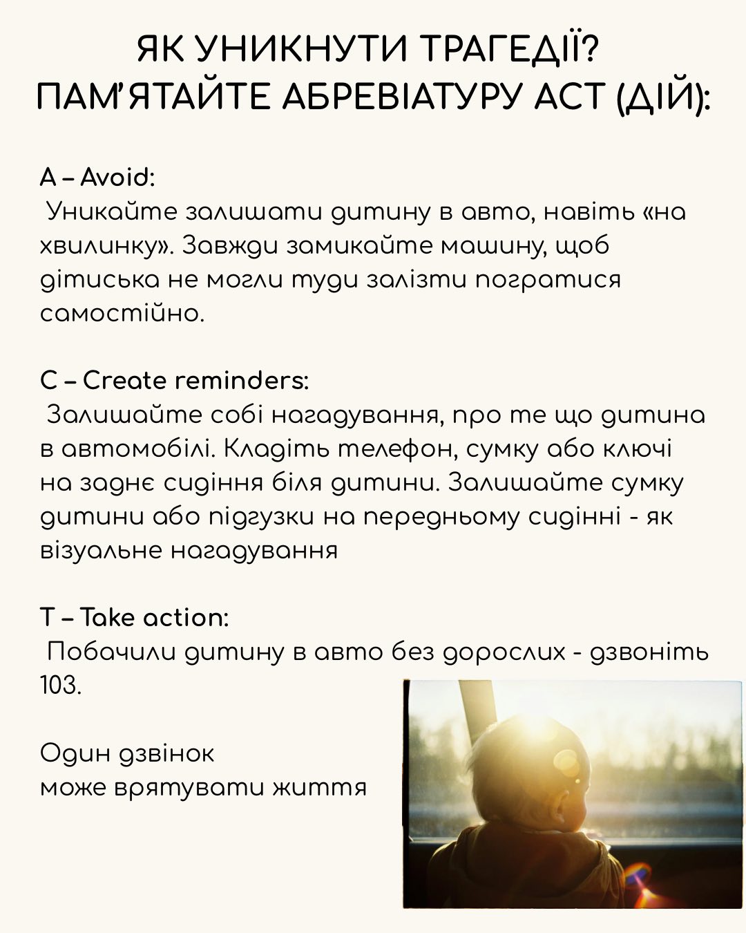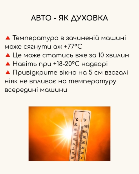 Пам’ятайте: навіть одна хвилина в авто може коштувати життя.