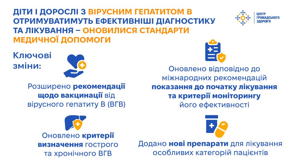 Оновлення в Стандартах охоплюють низку важливих аспектів профілактики, діагностики та лікування вірусного гепатиту B (ВГВ) у дітей і дорослих, а саме: