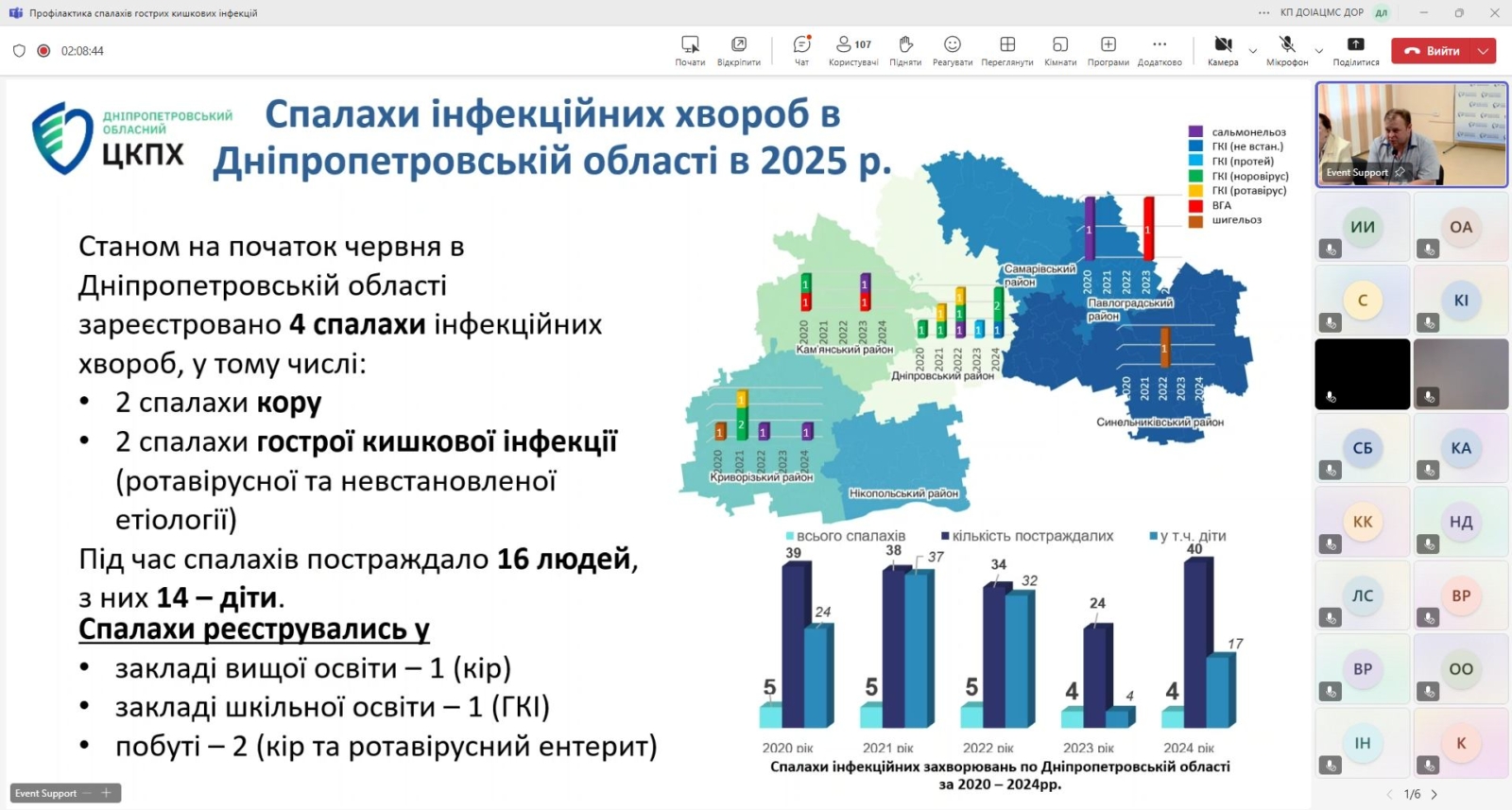16 червня 2025Фахівці ДУ «Дніпропетровський ОЦКПХ МОЗ» 12.06.2025 року в рамках проєкту «Медики за життя» прийняли участь у онлайн-зустрічі з мешканцями територіальних громад Дніпропетровської області, яка відбулась в КП «Дніпропетровський обласний інфораційно-аналітичний центр медичної статистики» ДОР: молоддю, педагогами, медичними працівниками, фахівцями соціального захисту населення, громадськими діячами. Зустріч пройшла, як просвітницький захід у складі двох блоків, під час яких були розглянуті питання: