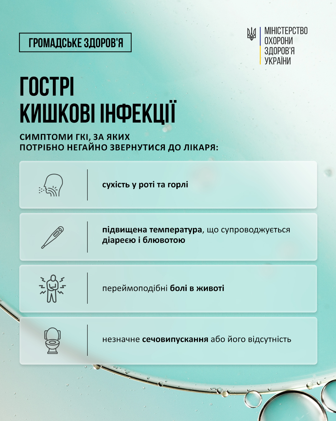 Пам’ятайте: профілактика — найефективніший спосіб захисту від кишкових інфекцій. Дотримуйтеся чистоти рук, споживайте безпечні продукти, особливо в умовах надзвичайного стану чи перебування в місцях масового скупчення людей.