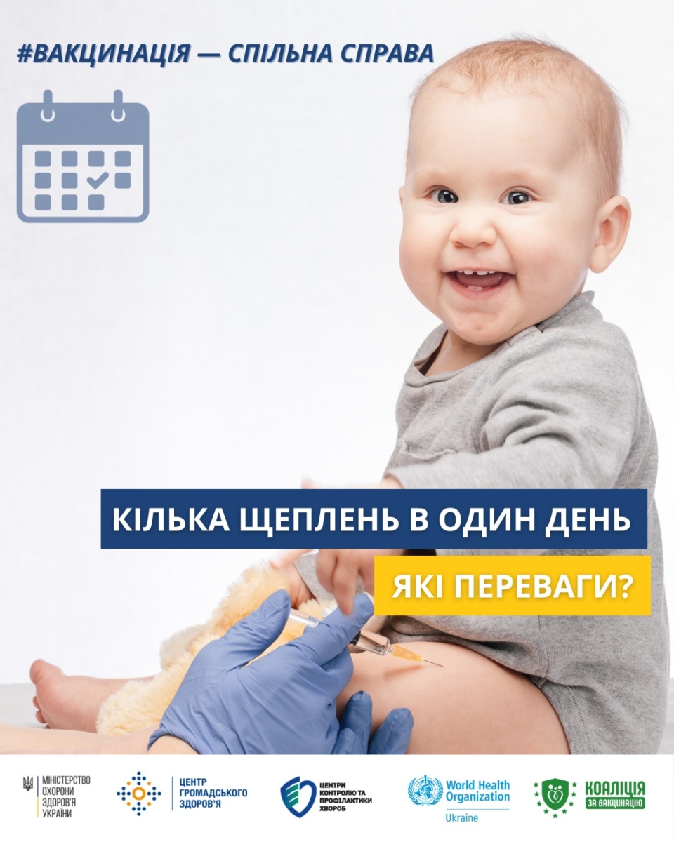Імунна система немовляти чудово справляється з декількома вакцинами одночасно. Вона стикається з набагато більшою кількістю антигенів щодня, ніж є у вакцинах. Тому дотримання календаря — найкращий вибір для здоров’я вашої дитини. До речі, у країнах, де у щепленнях одночасно задіяні і лікар, і медична сестра, практикують одномоментне введення двох вакцин — в обидві ніжки або ручки. Таким чином можна скоротити для дитини час відчуття болю.
