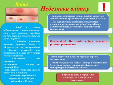 • Кліщі — можуть бути носіями хвороби Лайма.
