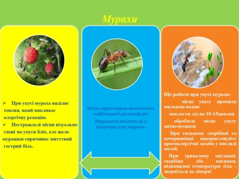 • Оси та бджоли — можуть жалити, особливо небезпечно для алергіків.