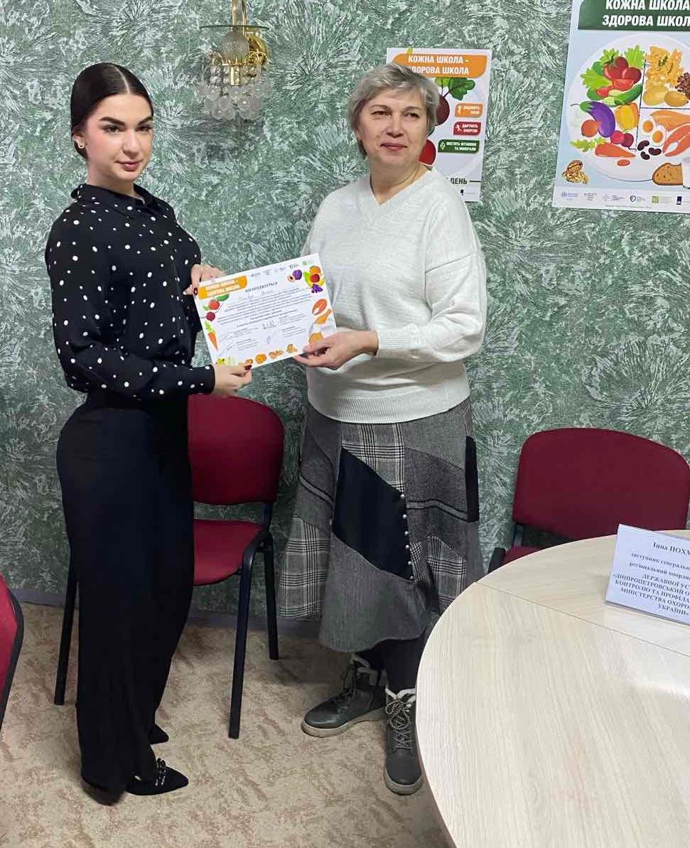 24 січня 2025Під керівництвом генерального директора ДУ «Дніпропетровський ОЦКПХ МОЗ» Сергія ВАЛЬЧУКА, заступник генерального директора ДУ «Дніпропетровський ОЦКПХ МОЗ», регіональний координатор проєкту «Кожна школа – здорова школа» – Інна ПОХМУРКО разом з лікарем із загальної гігієни ДУ «Дніпропетровський ОЦКПХ МОЗ» Мальвіною ЗУБ, нагородили найактивніших учасників, педагогічний колектив та керівництво Комунального закладу «Ліцей 44» Камʼянської міської ради вручили грамоти і подарунки (шопери, пляшки для питної води, пазли «Тарілка здорового харчування»)!