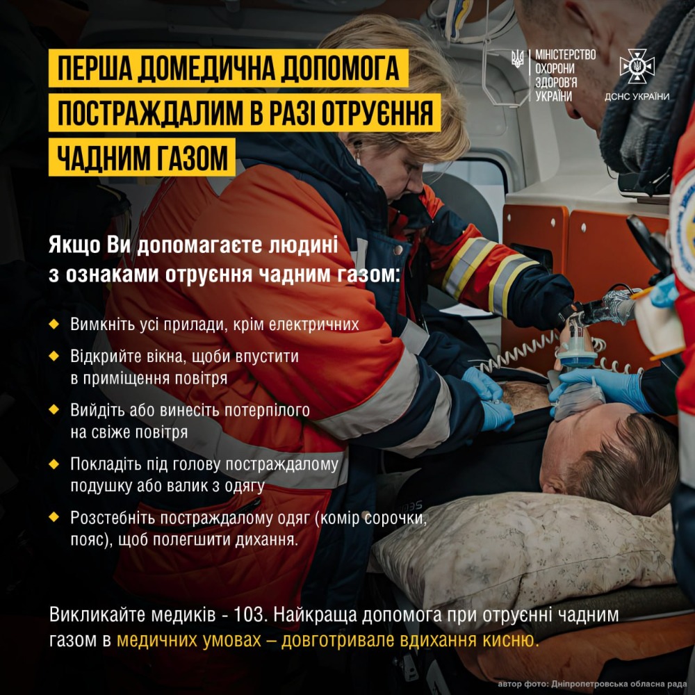 Надання першої допомоги при отруєнні чадним газом є критично важливим і може врятувати життя. Ось основні кроки, які слід вжити: