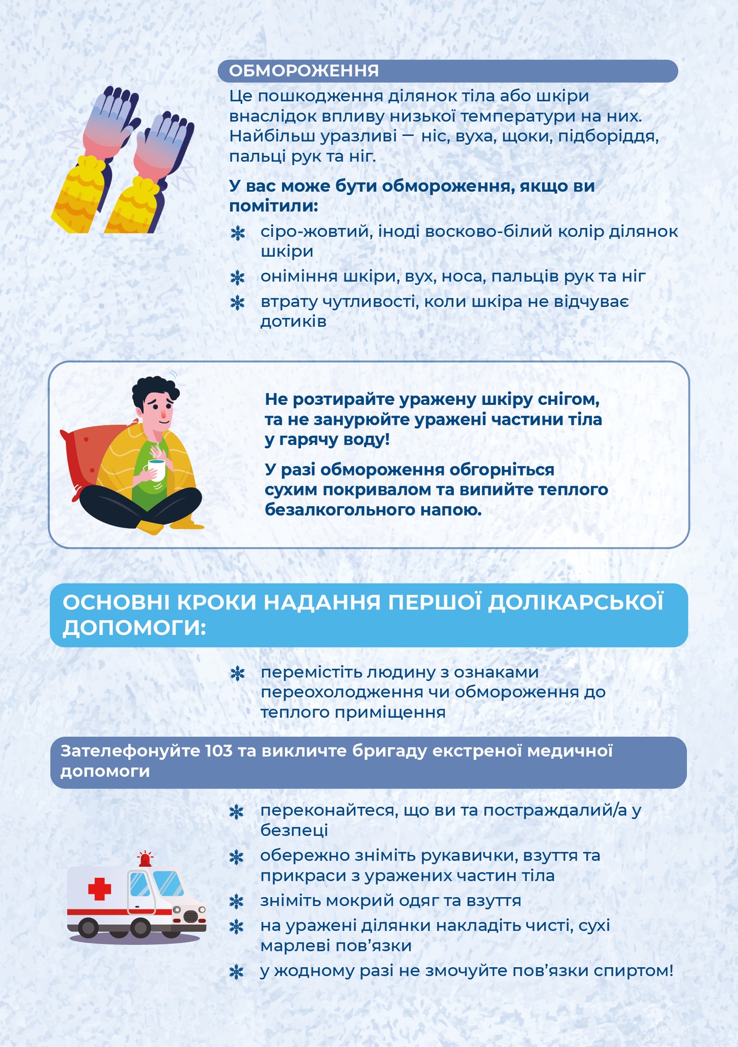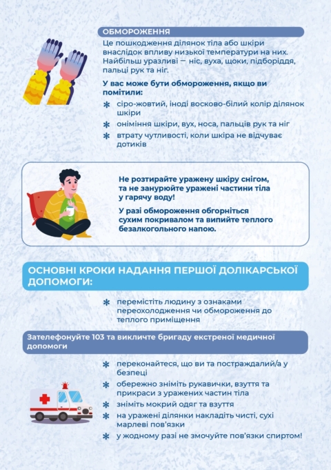 Пропонуємо вам декілька порад як діяти при переохолодженні та обмороженні – читайте на віжуалах, зберігайте корисну інформацію та розповідайте близьким.