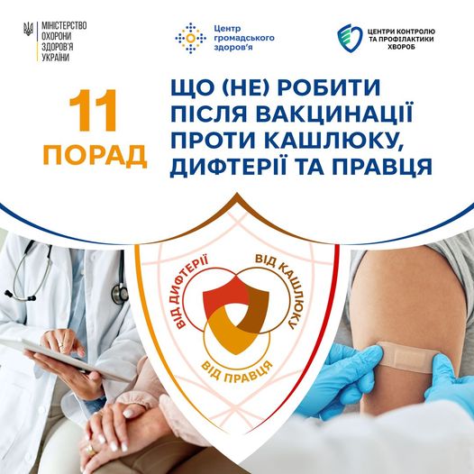 Поради для комфортного перебігу вакцинації проти кашлюку, дифтерії та правця: