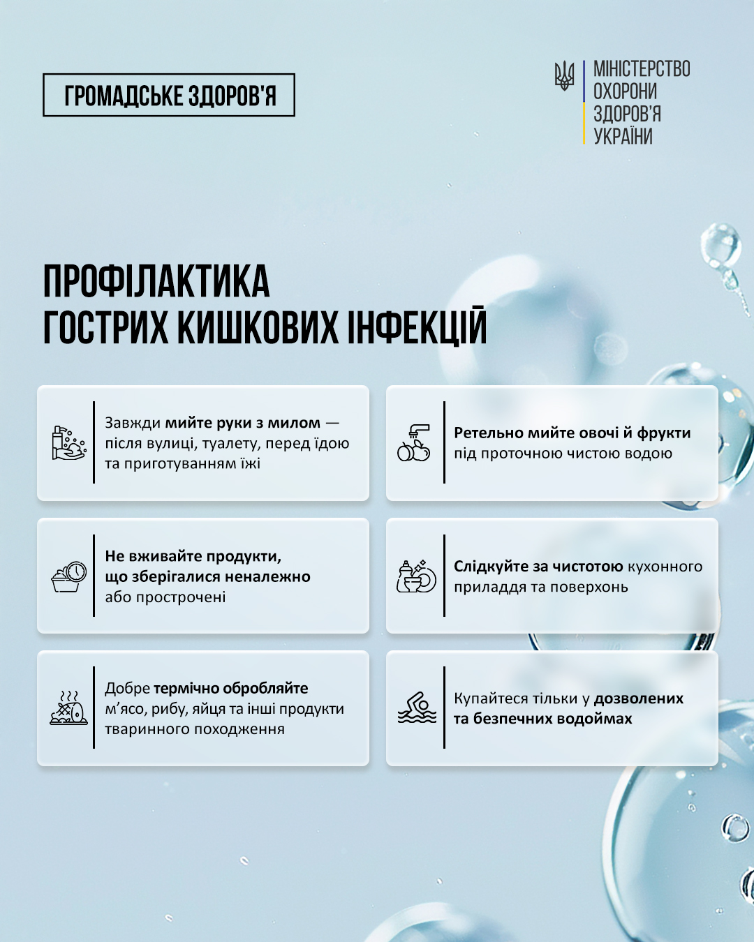 6 серпня 2025За даними Міністерства охорони здоров’я з початку року в Україні вже зафіксовано 38 спалахів гострих кишкових інфекцій. Зареєстровано 24 810 випадків таких інфекцій, усі захворілі отримали необхідну медичну допомогу.