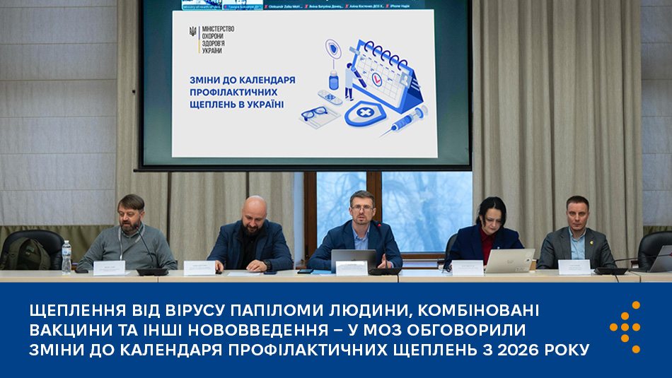 У Міністерстві охорони здоров’я України відбулася фінальна експертна зустріч щодо змін у Календарі профілактичних щеплень, які планують запровадити з 2026 року. Ці зміни вже пройшли громадське обговорення та отримали погодження центральних органів виконавчої влади. Наразі завершено процедуру державної реєстрації фіналізованого варіанту змін в Міністерстві юстиції, очікується офіційна публікація.