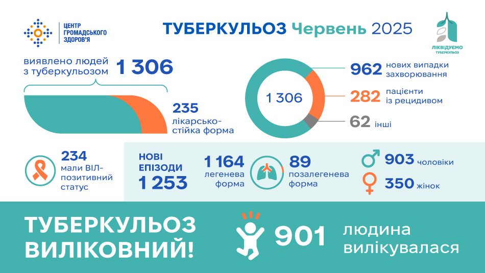 У червні 2025 року вилікувалося від туберкульозу 901 людина.