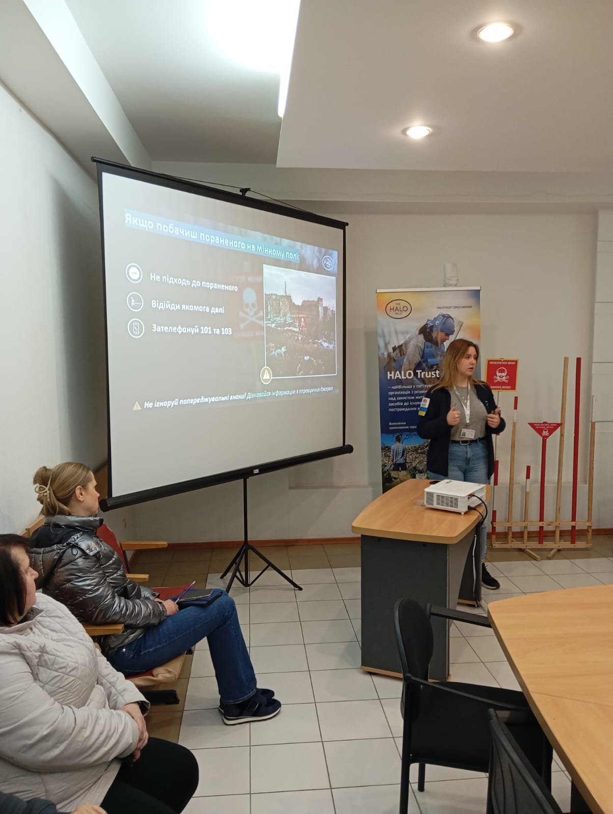 HALO працює в Україні з 2016 року. HALO Trust займається очищенням територій від мін та вибухонебезпечних предметів, навчає населення правилам безпечної поведінки в умовах війни.