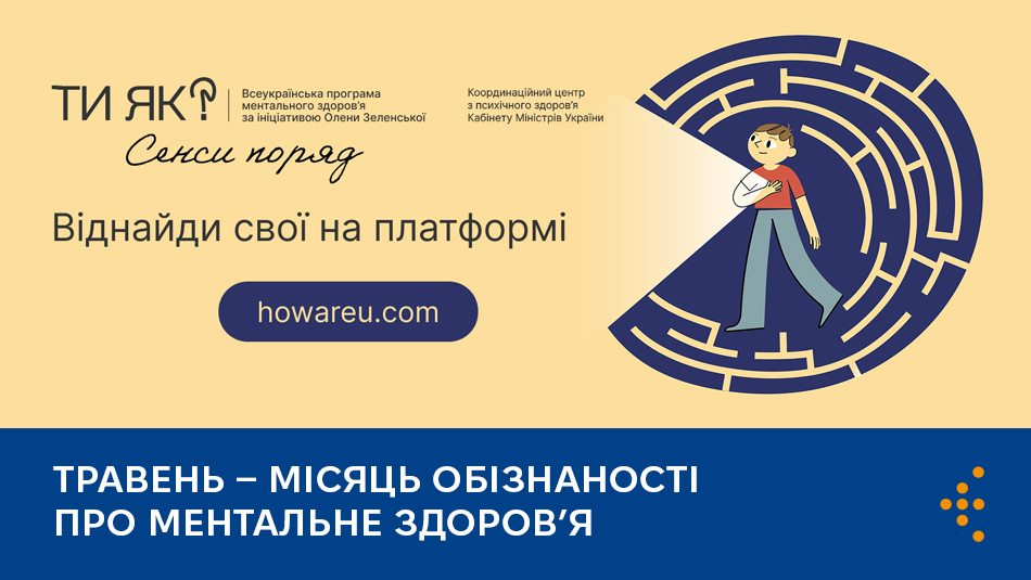 Місяць обізнаності про ментальне здоровʼя започаткований у США 1949 року. Цьогоріч в Україні він проходить під закликом віднайти свої сенси — у часи випробувань вони працюють як внутрішні опори: «Ти як? Сенси поряд. Віднайди свої на платформі howareu.com».