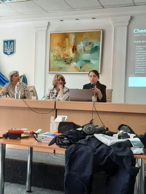 У ході тренінгу лікарем-лаборантом-гігієністом з дослідження хімічних факторів навколишнього середовища Іриною ДЕМ’ЯНЕНКО представлені презентації на тему: “Заходи реагування на хімічні загрози”.