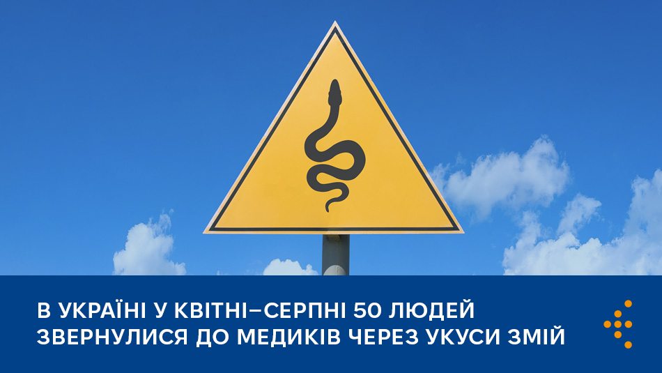 З квітня по серпень 2025 року в Україні зареєстровано 50 звернень по медичну допомогу через укуси змій, що на 18 випадків менше, ніж за аналогічний період минулого року.