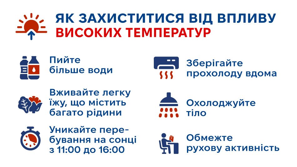 Якщо бачите людину, якій зле, — допоможіть знайти тінь чи прохолодне місце, запропонуйте воду та викличте медичну допомогу за потреби.