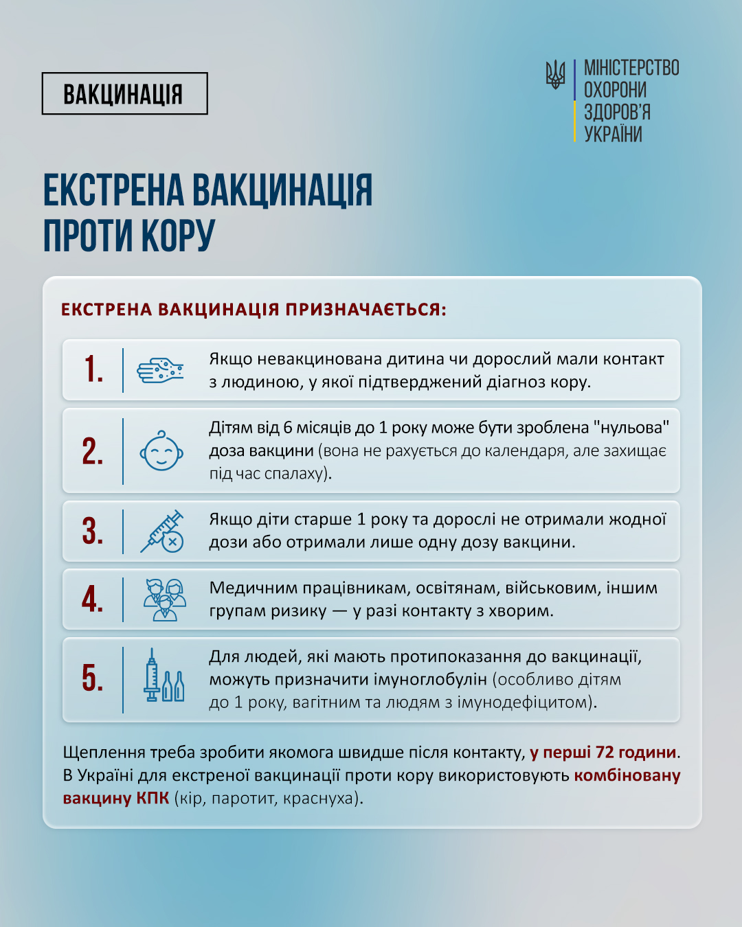 В яких випадках та кому проводять «екстрену вакцинацію» проти кору?