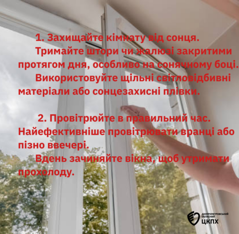 - Провітрюйте в правильний час. Найефективніше провітрювати вранці або пізно ввечері. Вдень зачиняйте вікна, щоб утримати прохолоду.