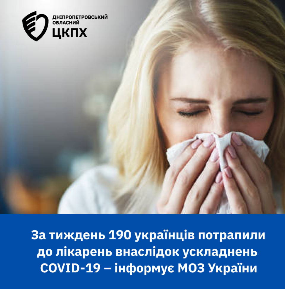 За тиждень 190 українців потрапили до лікарень внаслідок ускладнень COVID-19, серед них – 18 дітей