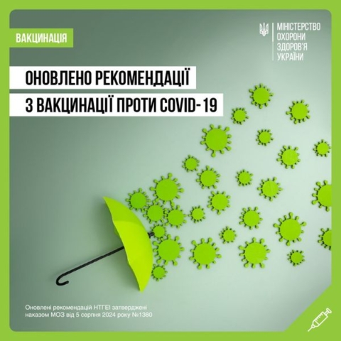 Оновлені рекомендації НТГЕІ затверджені наказом МОЗ від 5 серпня 2024 року №1380 (https://bit.ly/46Qbltx) та відповідають останнім світовим рекомендаціям щодо щеплень проти СОVID-19 Всесвітньої організації охорони здоров’я (World Health Organization Ukraine).