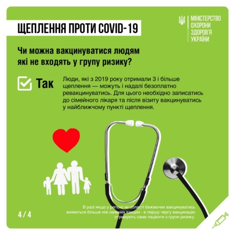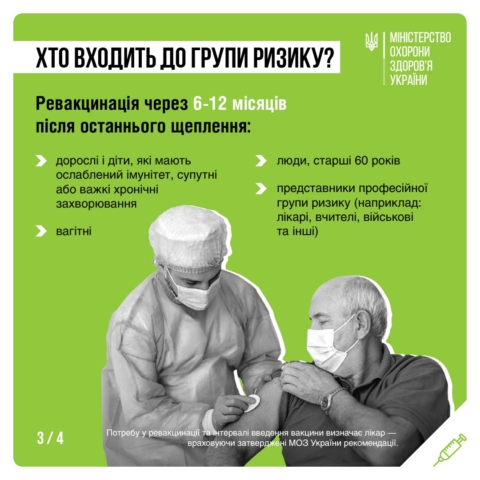 3. Ревакцинацію рекомендовано робити через 6-12 місяців не усім, а людям із груп ризику: